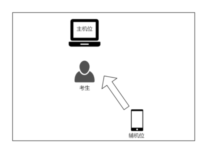 主機位電腦攝像頭對準考生本人,輔機位設備攝像頭從考生后方成45°拍攝。要保證考生考試屏幕能清晰地被監(jiān)考員看到。雙機位均需確保攝像頭視角能看到考生考試的桌面和雙手。