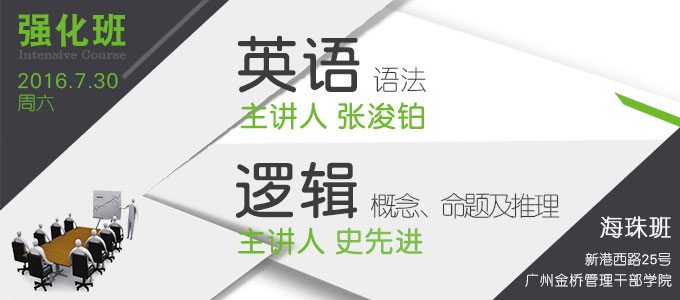【邏輯、英語強(qiáng)化班(海珠)】7月30日 講師:張浚鉑、史先進(jìn)