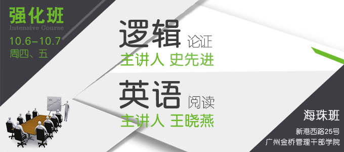 【邏輯英語強(qiáng)化班(海珠)】10月6-7日 講師:史先進(jìn)、張曉燕