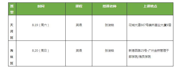 【課程預(yù)告】8月19-20日天河、海珠班課程安排