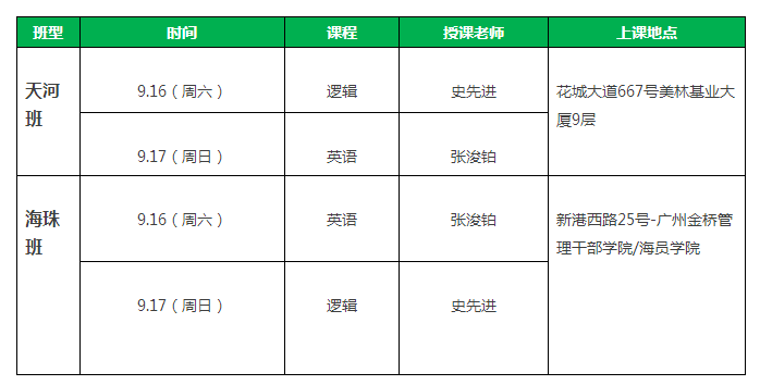 【課程預(yù)告】9月16-17日天河、海珠班課程安排