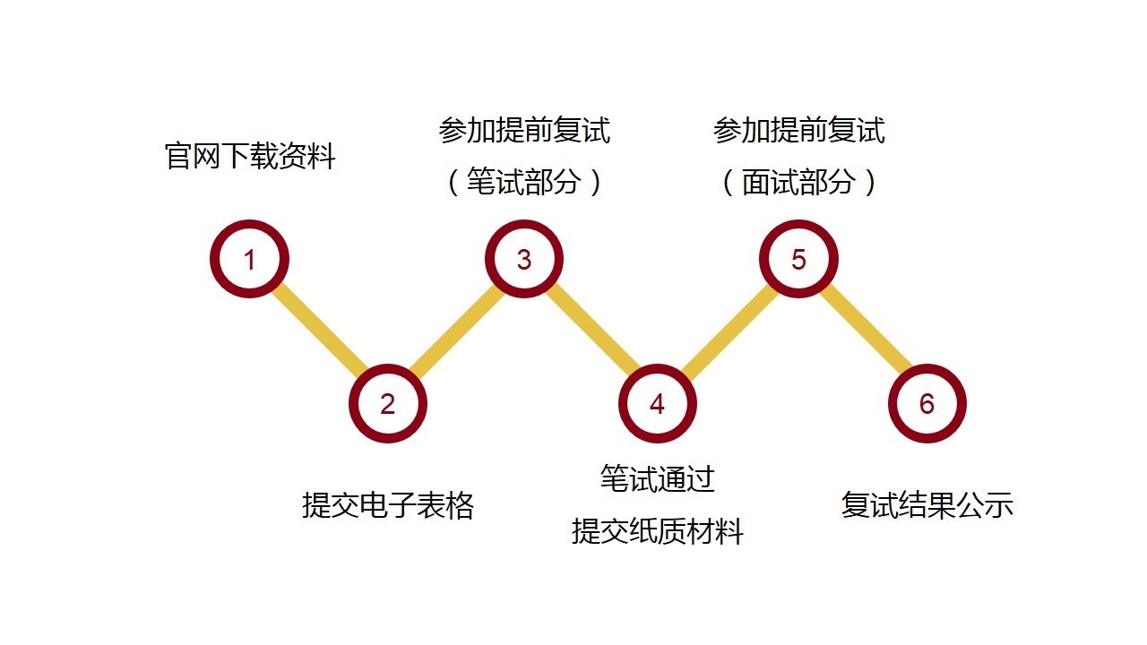 全部申請(qǐng)人都須在規(guī)定時(shí)間內(nèi)提交申請(qǐng)材料,經(jīng)過材料評(píng)審,擇優(yōu)給予申請(qǐng)人提前復(fù)試資格。通過提前復(fù)試(包括面試與筆試)將給予部分申請(qǐng)人“有條件錄取”及“候補(bǔ)錄取”資格。